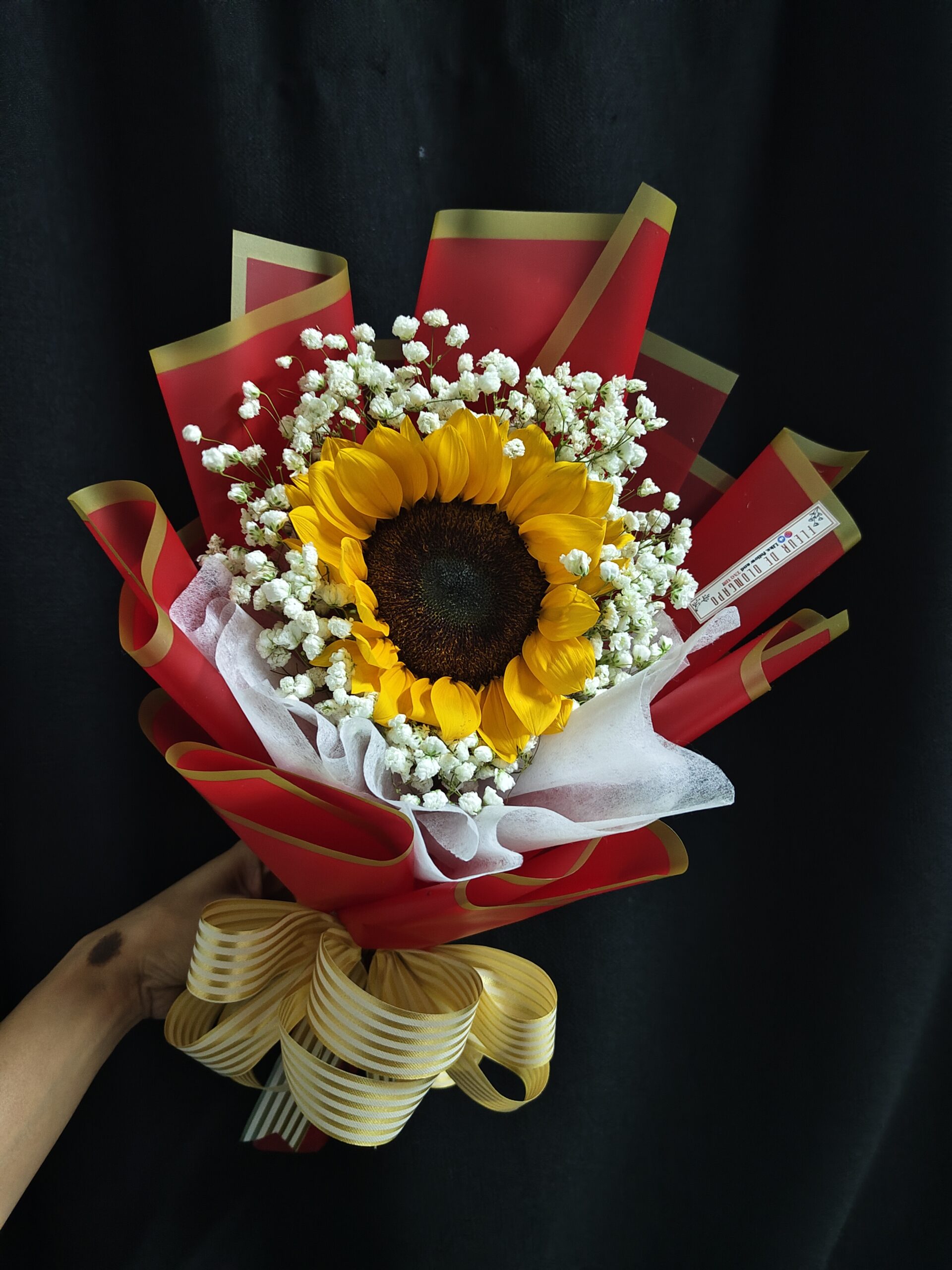 Bright, uplifting, and full of joyful warmth, our Cheerful Blossoms sunflower bouquet is designed to bring an instant smile to anyone’s day. Featuring radiant sunflowers paired with soft accent blooms and fresh greenery, this arrangement captures the essence of sunshine and positivity.
